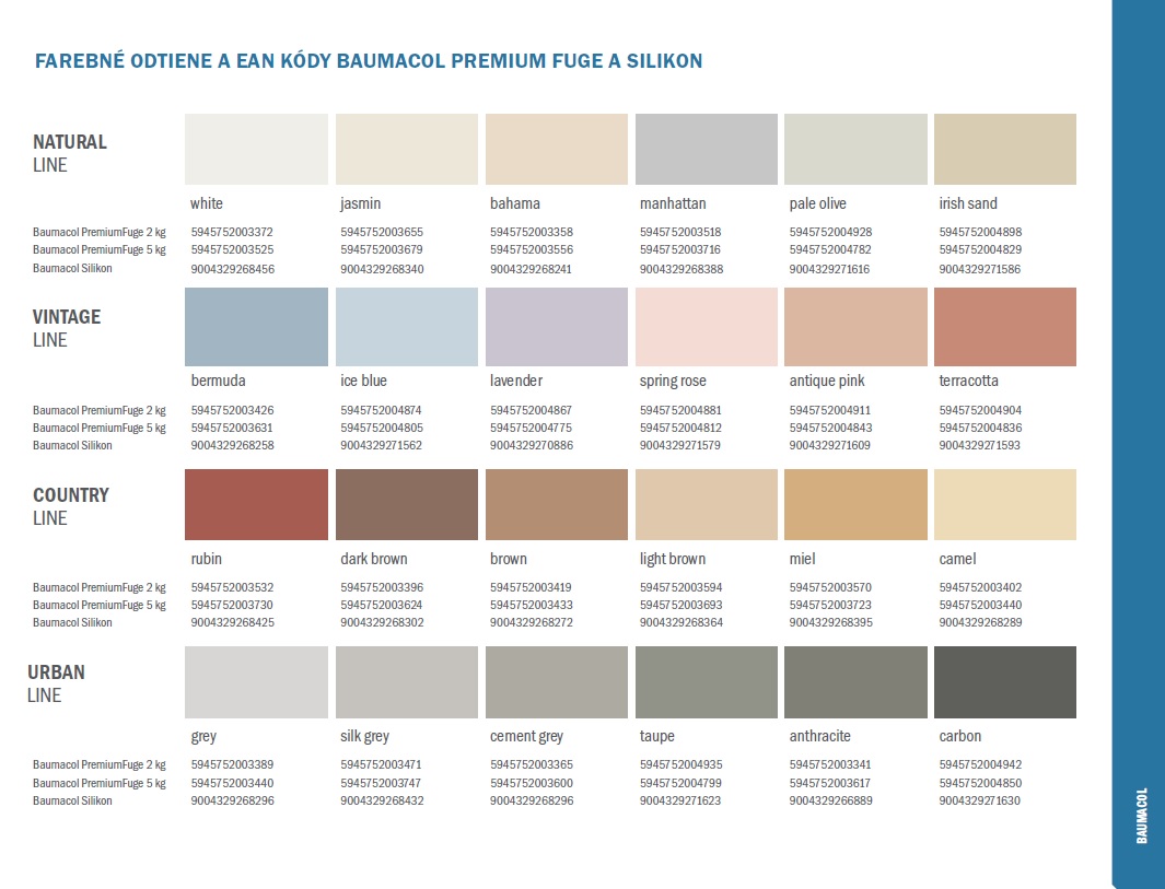 Suchá škárovacia zmes triedy CG2 podľa EN 13888. Na vnútorné a vonkajšie použitie, v 24 farebných odtieňoch. Pre šírky škáry 1 - 8 mm.